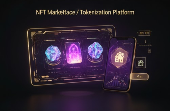 Full-stack development of a secondary marketplace for Non-Fungible Tokens (NFTs) or the tokenization of real-world assets (RWA) like real estate. This highlights proficiency in custom token standard implementation, designing dynamic royalty fees, and secure wallet integration (e.g., MetaMask, Phantom).